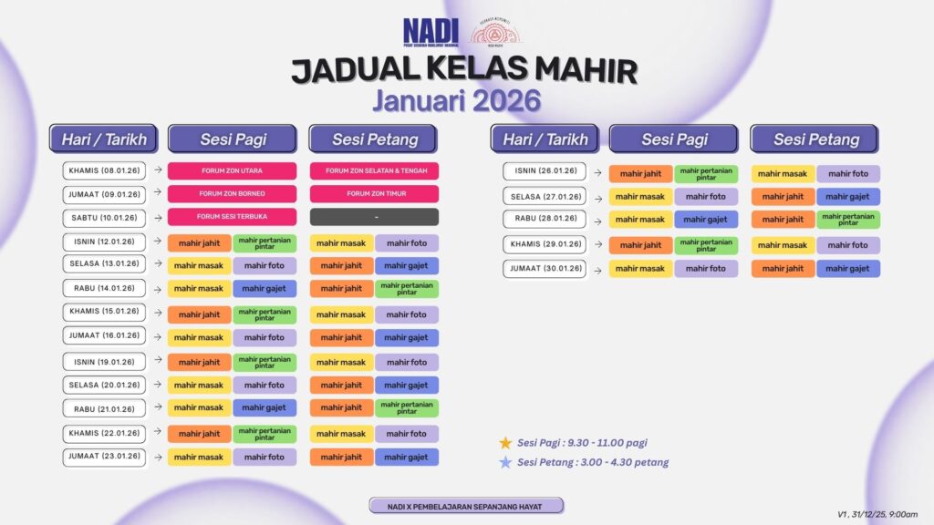 JADUAL KELAS MAHIR SESI 3 JANUARI 2026
